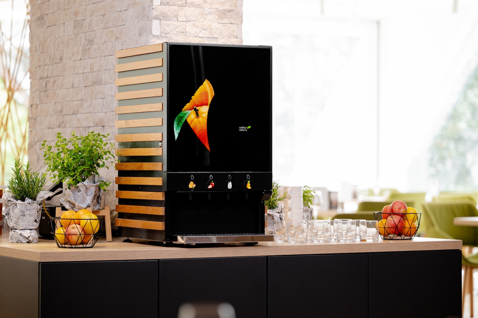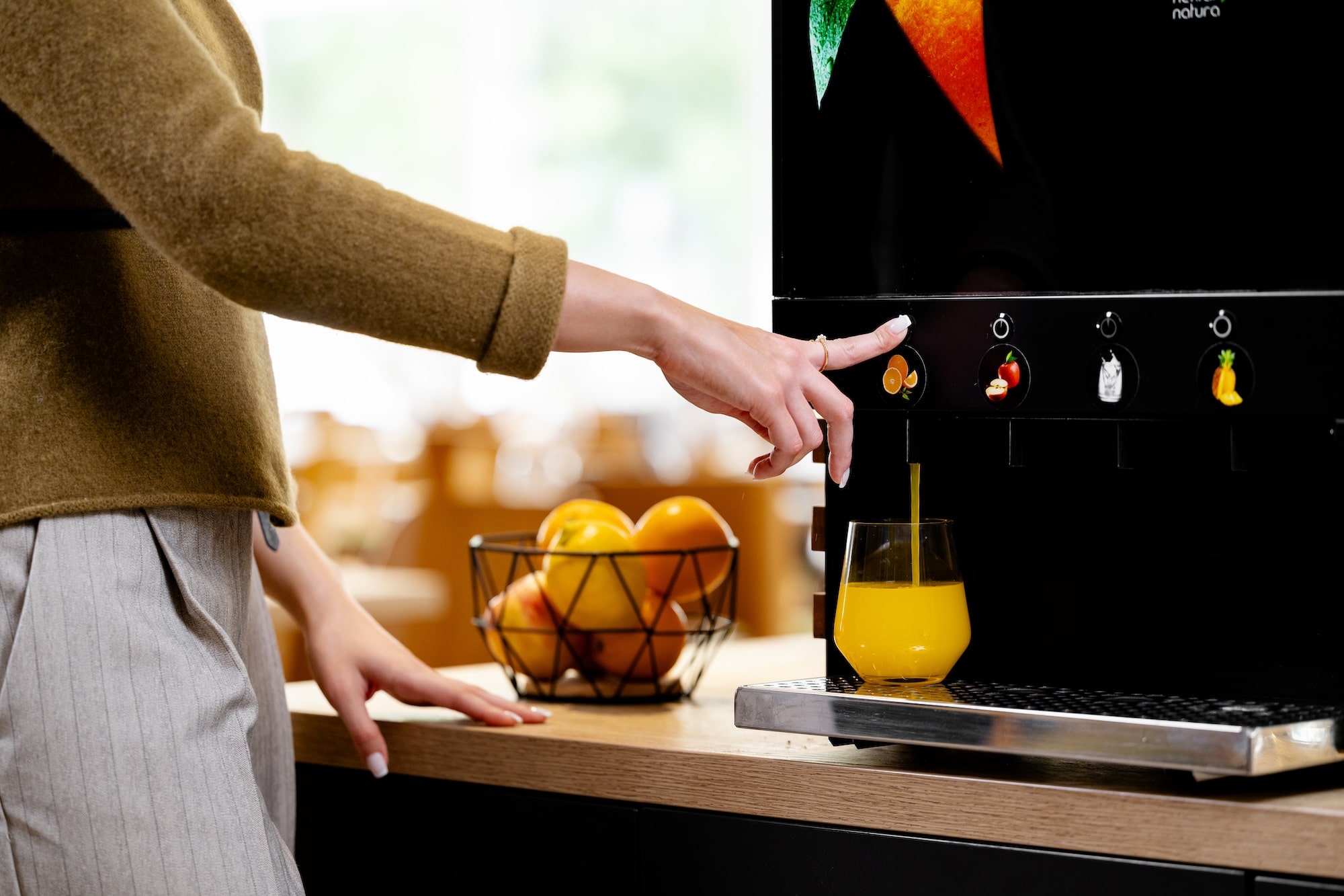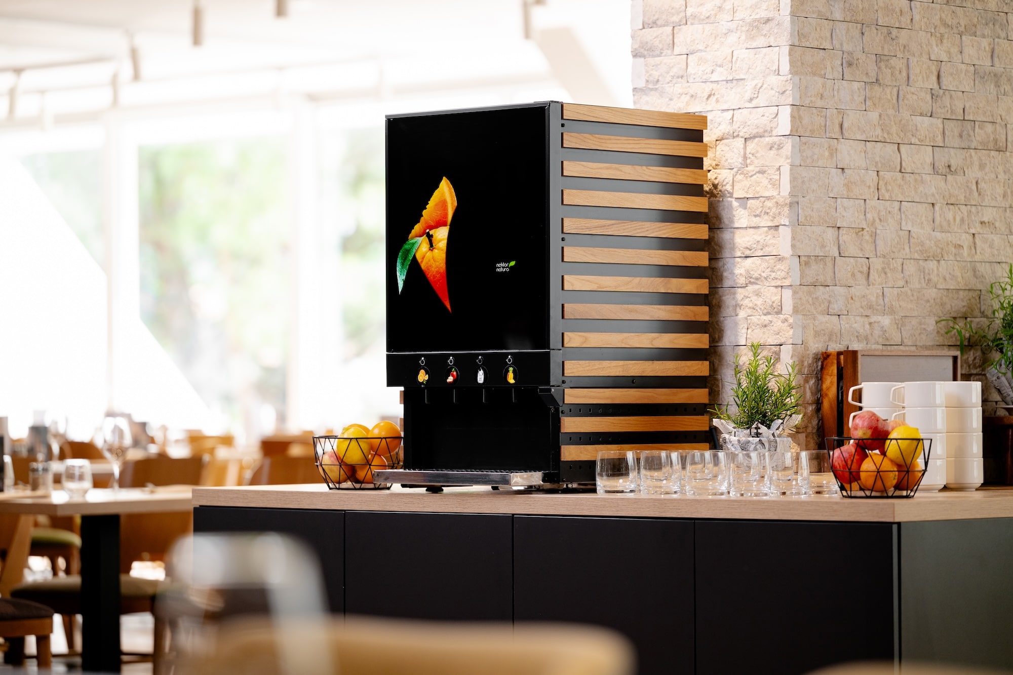 Conçu pour une utilisation polyvalente, il elle convient aux environnements tels que les buffets de petit-déjeuner ou les comptoirs libre-service. Utilisant des jus concentrés et de l’eau fraîche, il minimise les déchets et les besoins de stockage tout en restant écologique et efficace.
