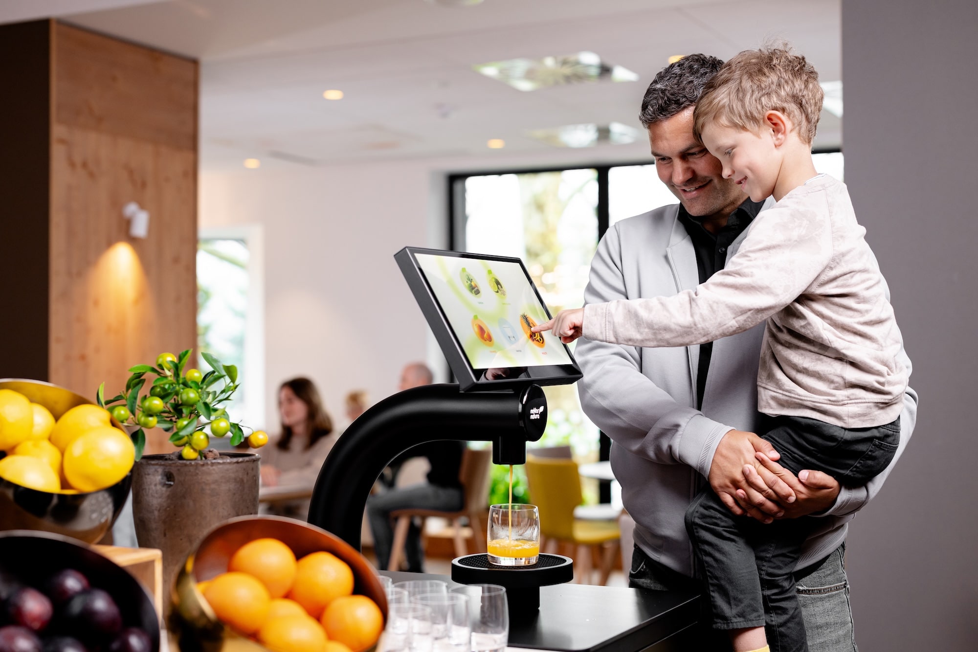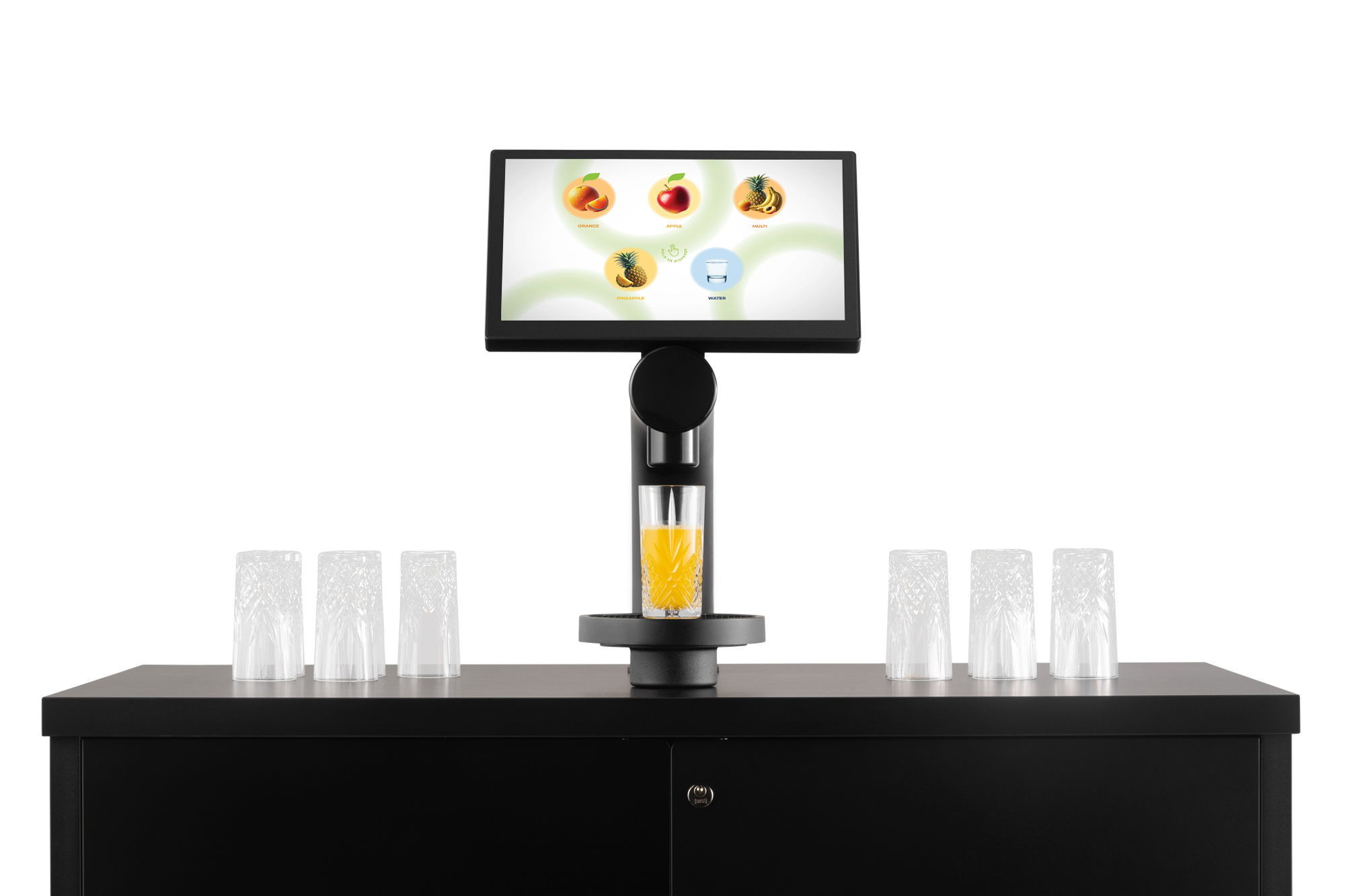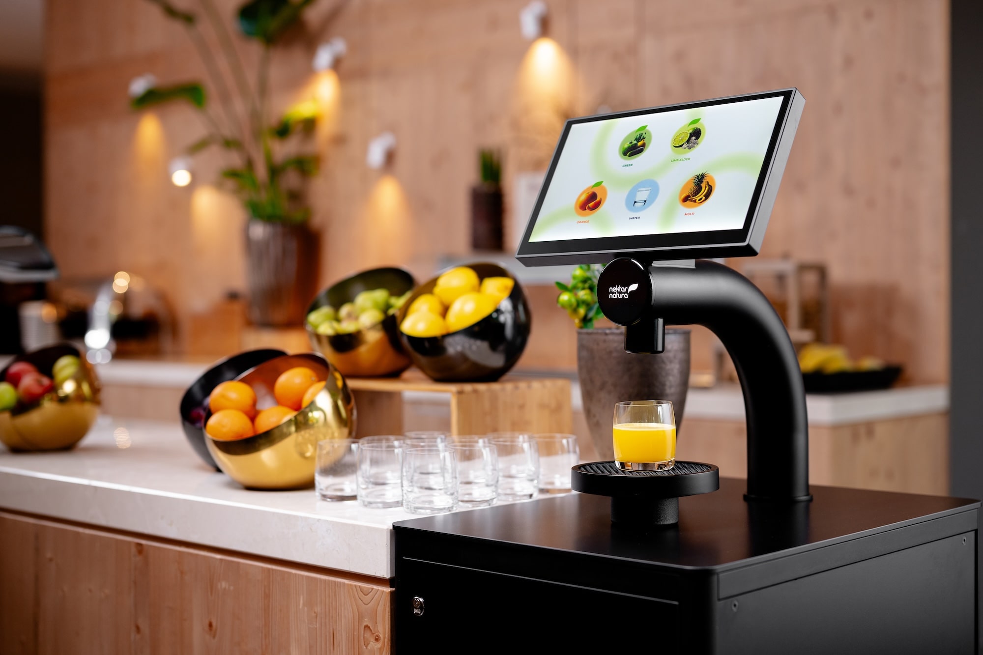 Offer up to 10 customizable drinks, scheduled by time of day, with options like fresh juices and sparkling water. Add your own branding for a tailored touch.